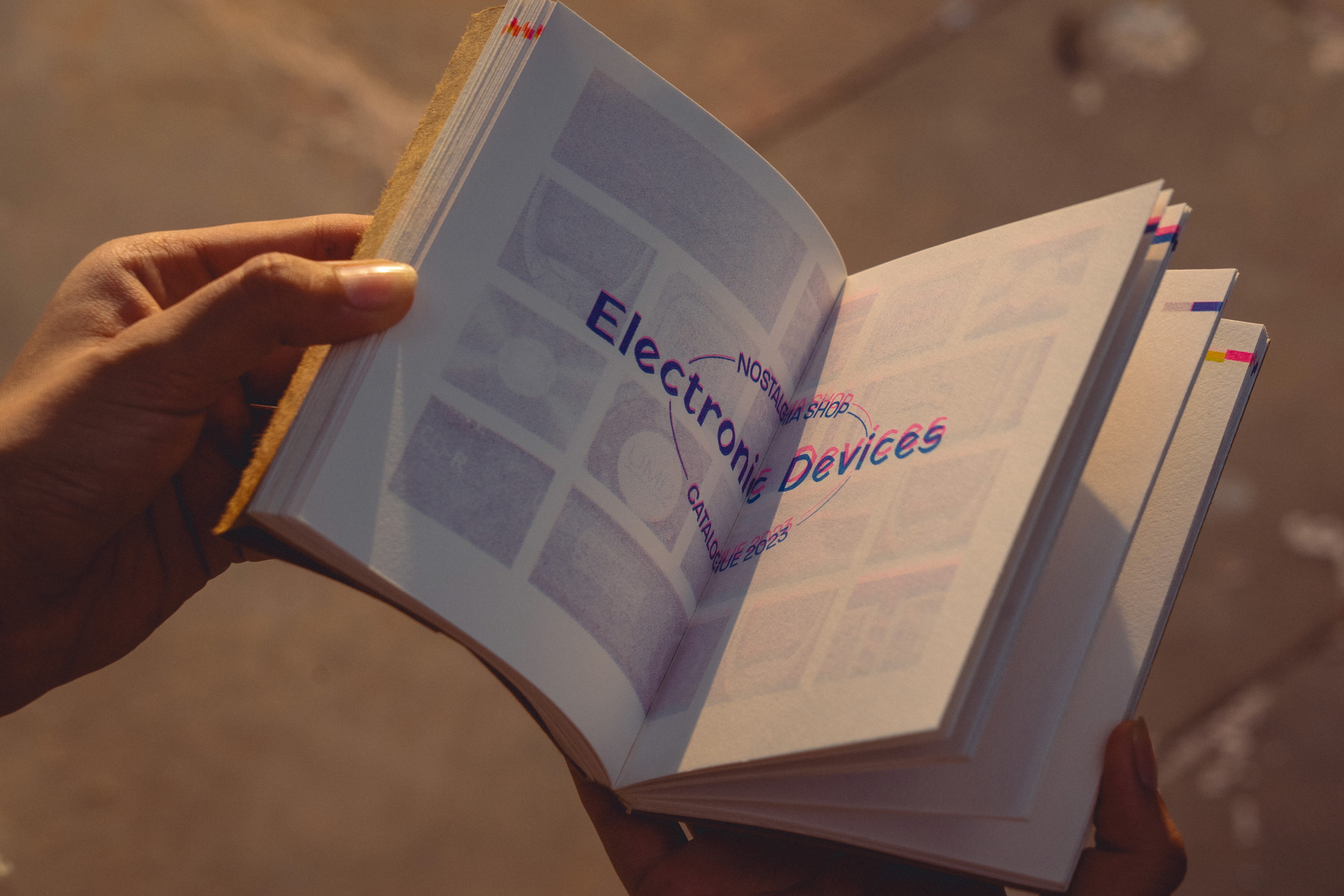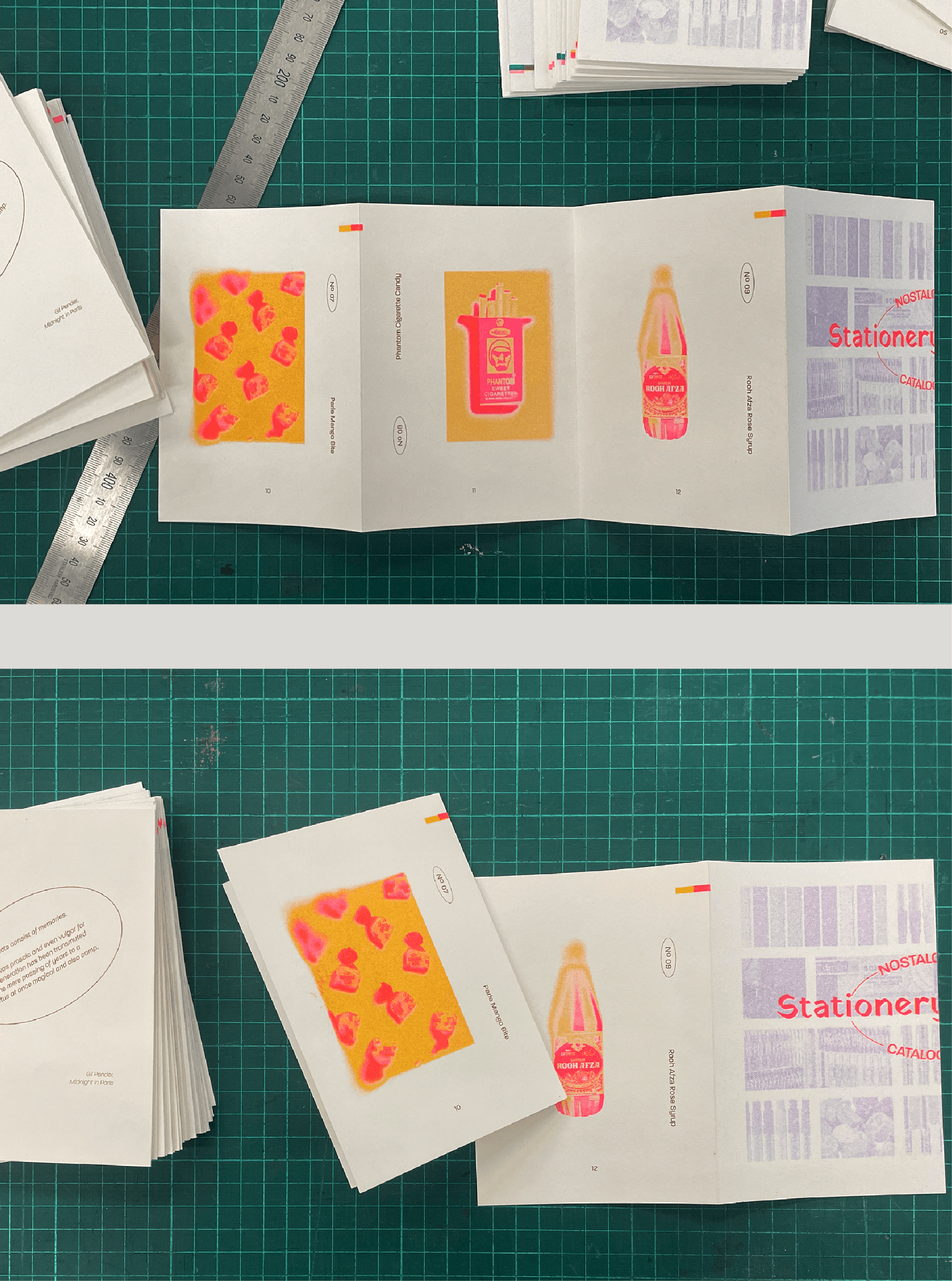 The book was printed in single sided strips which were then gathered in accordion folds and bound together. The cover of the Nostalgia Shop Catalogue doubles as an envelope and allows for the book to be sent by post to someone.