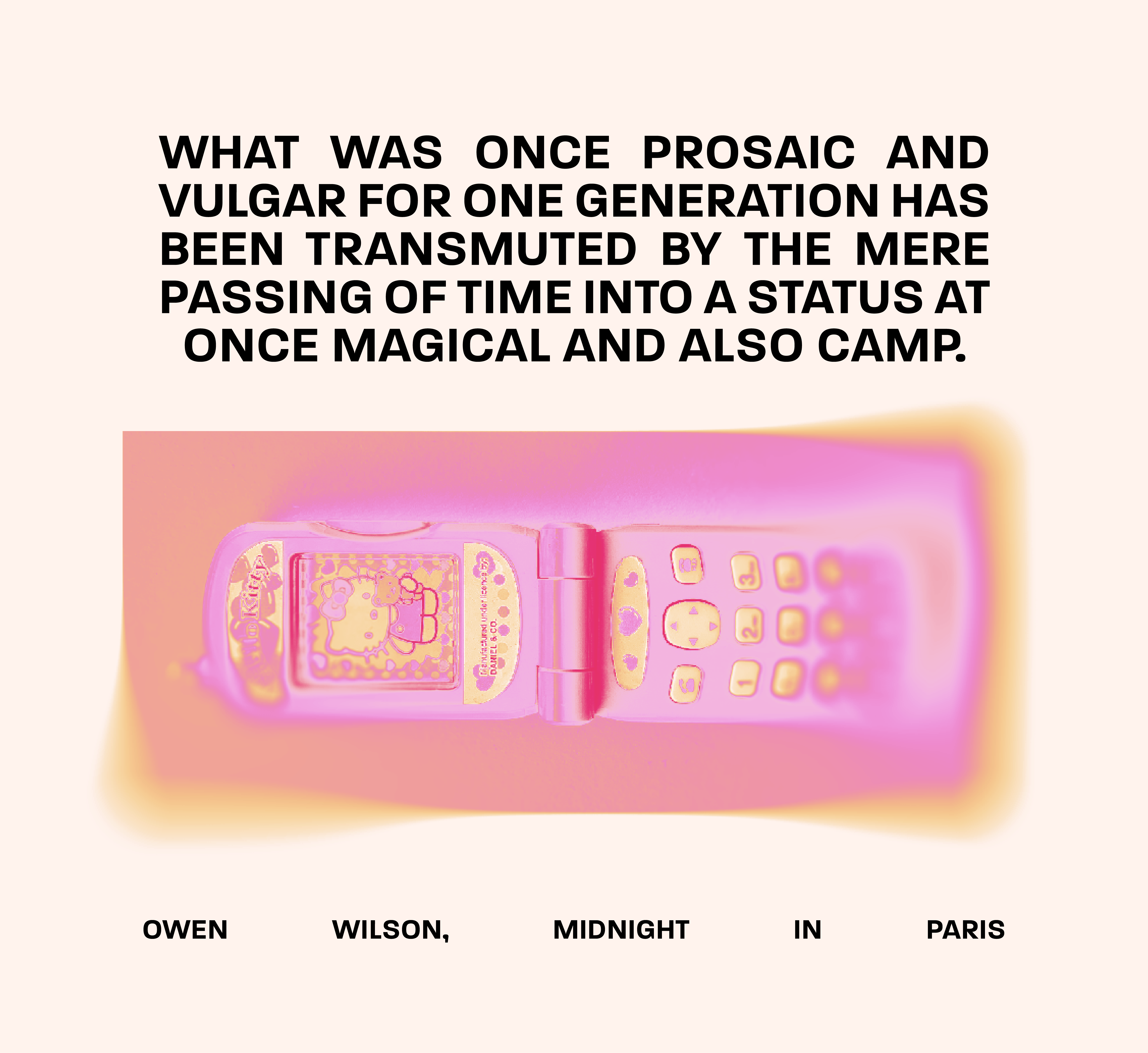 For example, "Origins of the girlboss" redirects the viewer to the iconic Hello Kitty flip-phone.